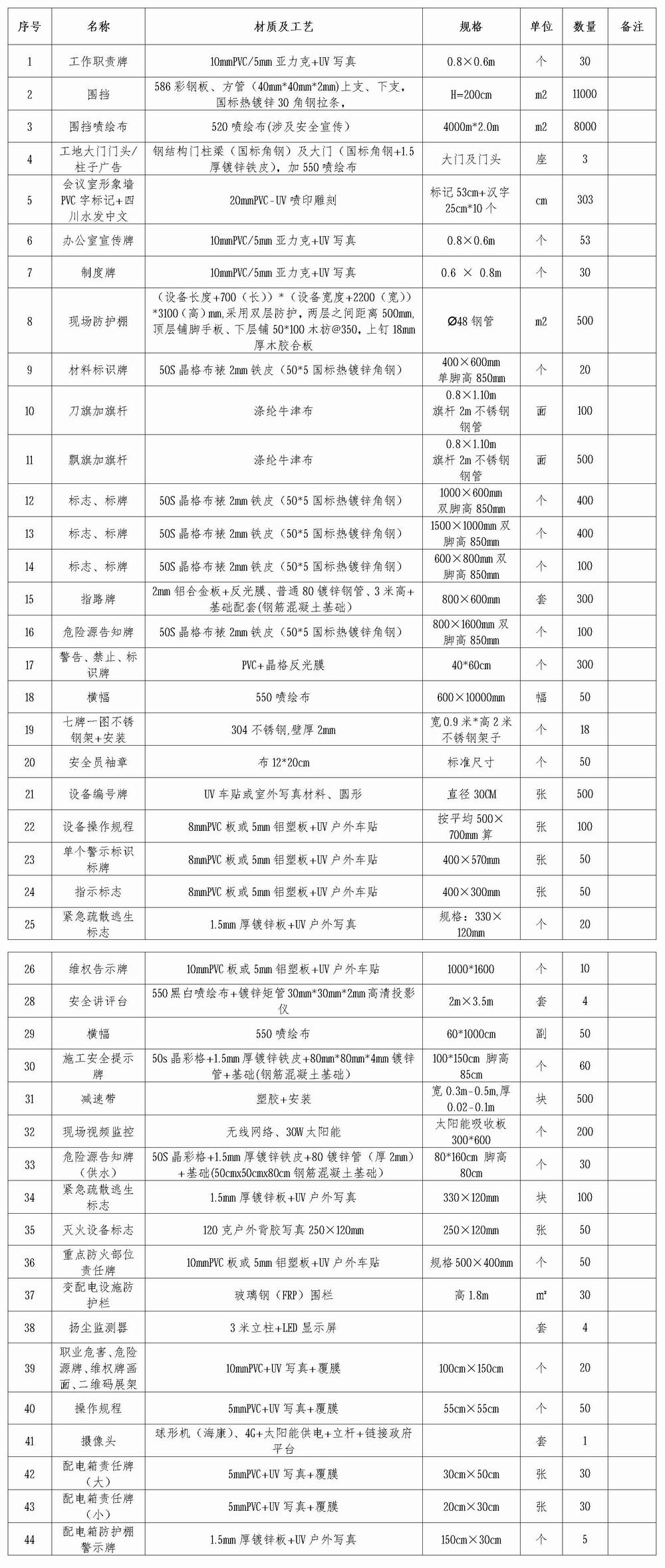 金堂縣沱江干流河道疏浚工程安全標準化建設定制清單: