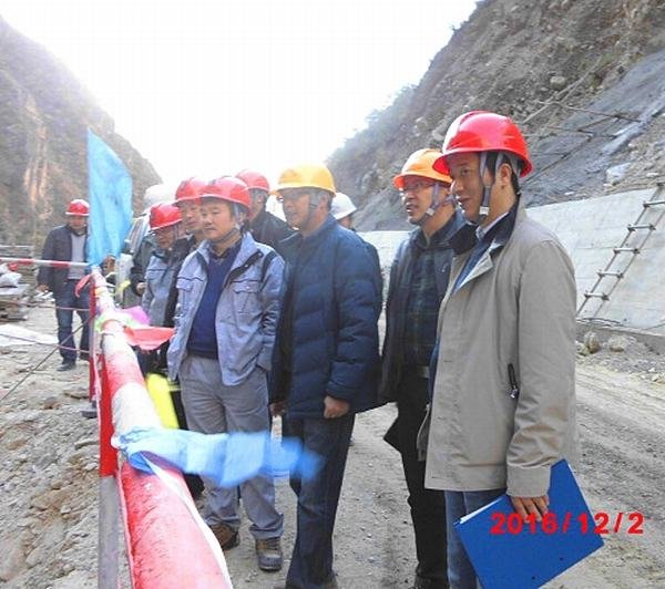 2016年12月2日下午,華電集團(tuán)水洛河公司總經(jīng)理蒲春雨率公司相關(guān)部門(mén)負(fù)責(zé)人到博瓦水電站首部樞紐工地現(xiàn)場(chǎng)檢查指導(dǎo)安全生產(chǎn)工作。