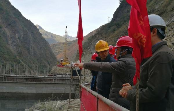 2017年12月9日上午,華電集團水洛河公司新任總經理劉映德率公司相關部門負責人以及設計監理一行,到博瓦水電站首部樞紐工地現場檢查指導工作。