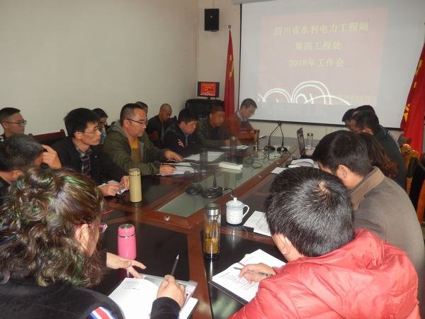 2018年3月10日,局第四工程處在毗河項目部會議室召開2017年度工作總結暨2018年工作安排會議,四處副科級以上部門負責人(項目副部長以上級)、處級領導干部及毗河項目職工共計48人參加會議。會議由處總工張亮亮主持。