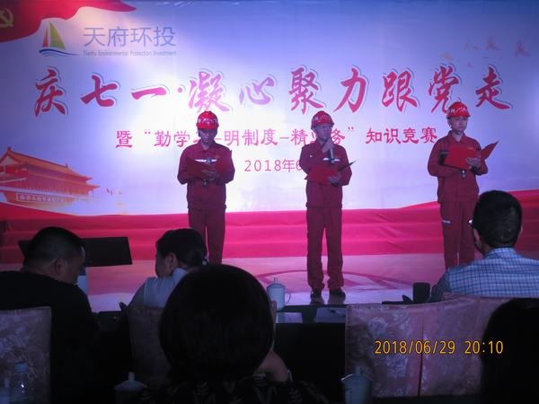 2018年6月29日,在喜迎中國共產(chǎn)黨誕辰97周年之際,應(yīng)業(yè)主邀請,盤龍寺攔河閘工程項目部參加了由成都天府水城環(huán)保投資集團有限公司組織舉辦的慶“七•一”文藝演出。金堂縣有關(guān)領(lǐng)導(dǎo)、成都天府水城環(huán)保投資集團有限公司董事長及施工單位負責(zé)人觀看演出。