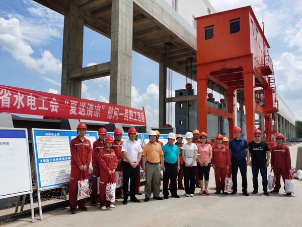 2020年7月3日,四川省水利電力工會(huì)副主席張玉奎帶領(lǐng)辦公室主任蘇吉斌、干事王妍一行,前往公司承建的金堂縣沱江盤龍寺攔河閘工程項(xiàng)目工地,看望慰問(wèn)高溫下工作的一線職工,為他們送去了防暑降溫物品、慰問(wèn)金和貼心的關(guān)懷,讓職工體會(huì)到組織送去的絲絲清涼,背后是維護(hù)職工權(quán)益的拳拳之心。