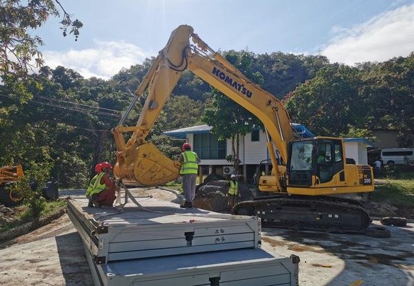 鑒于新冠肺炎疫情防控已經(jīng)轉(zhuǎn)入常態(tài)化,鑫宏工程公司保持疫情防控要求不降低,高度關(guān)注項目所在國的疫情動態(tài),針對性分析和研判疫情風險,在確保出國人員的安全前提下,主動協(xié)調(diào)項目發(fā)包人,利用巴新境內(nèi)各種社會資源,采用遠洋海運分批次將新購機械設備、辦公設備及各類工器具運達巴新境內(nèi)。在嚴格按程序辦理好施工人員入境巴新的許可證和工作簽證后,鑫宏工程公司總工程師、項目常務副經(jīng)理兼總工鄭中華帶領項目員工一行11人采取包機的方式于2020年9月17日再次安全入境巴新。