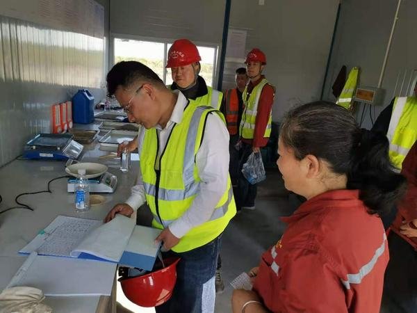 唐驚濤一行到達工地后,隨即徒步到正在施工的廠房、閘壩基坑、拌合站地弄、篩分站凈化池,河道浚挖等工作面進行詳細的踏勘、詢問。在一期導流圍堰上,向陪同人員詢問了解工程設備和人員的投入情況、圍堰施工質(zhì)量、各節(jié)點工期目標實現(xiàn)情況。在地磅房、電工班、實驗室,分別和職工親切交談,了解職工的工作情況、收入情況,勉勵職工立足崗位,加強業(yè)務知識學習,不斷提升工作技能,掌握新工藝、新技術的應用,適應新的時代背景下的工作環(huán)境,為公司的發(fā)展做出更大的貢獻。同時,職工對公司領導的關心和親切慰問表示感謝,愿在崗位上努力奉獻。
