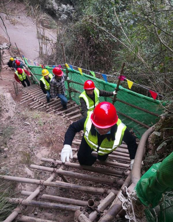 在工程局公司總經理袁斌、副總經理鄒世界陪同下,隆文非一行攀爬崎嶇陡峭的鋼管架人行棧道,分別到距離地面高73m的2#勘探平硐、距離河床高30m的1#勘探平硐以及5#勘探平硐,檢查施工現場的安全生產情況和施工進度。隆文非對項目安全生產管理、安全風險管控及隱患排查治理等方面提出具體要求:一是加強對施工作業人員管理,保證進場人員安全教育全覆蓋;對高處作業人員要體檢合格后才能上崗;二是優化專項方案,以合理的安全技術措施嚴防事故的發生;三是切實做好現場安全隱患排查治理,做到勤檢查、早發現、即整改;四是做好現場森林防火安全工作,力爭在汛期前完成施工任務;五是加強與水利院等相關各方的溝通協調,解決好包括安全生產在內的各項工作。