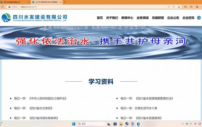 水,利萬物而不爭;水,人類生存之本。2023年3月22日是第三十一屆“世界水日”,3月22—28日是第三十六屆“中國水周”。在水利廳和集團部署下,建設公司積極組織開展以“強化依法治水攜手共護母親河”為主題的2023年“世界水日”“中國水周”活動。