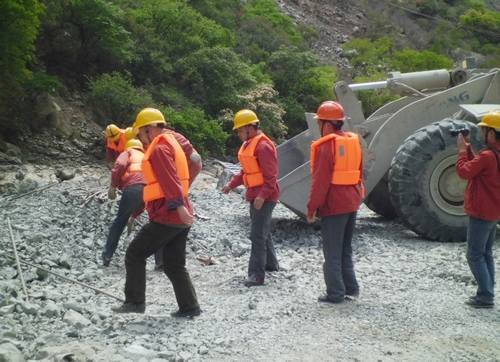 2014年5月14日14:00,固滴電站項目部常務(wù)副經(jīng)理、防洪演練現(xiàn)場總指揮毛偉發(fā)出指令:“我部接到監(jiān)理部轉(zhuǎn)木里縣氣象局通知,未來一小時內(nèi)將有一次強降雨,水洛河水位將急劇暴漲,請各工作面所有施工人員迅速撤離現(xiàn)場并轉(zhuǎn)移現(xiàn)場機械設(shè)備及材料”。當聽到指令后,各施工班組在負責人的帶領(lǐng)下,所有人員快速、有序地撤離到指定的安全地點。與此同時,抗洪搶險小組成員在組長鄭中華、張方清的帶領(lǐng)下,迅速進入現(xiàn)場將設(shè)備和材料全部轉(zhuǎn)移至安全地點,最后清點人數(shù)。演練結(jié)束,整個過程有條不紊。