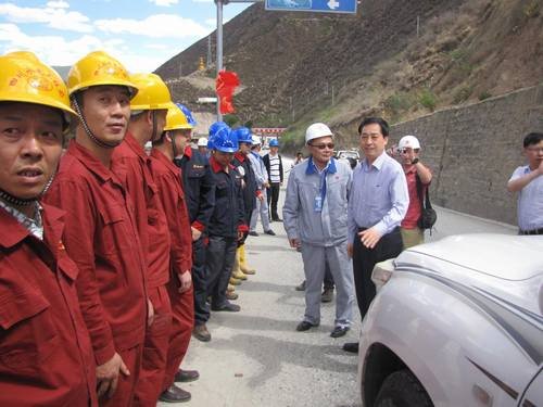 2015年5月27日下午3時,中國大唐集團(tuán)公司總經(jīng)理王野平一行蒞臨鄉(xiāng)城洞松水電站視察。我局常務(wù)副局長董蜀良、洞松水電站首部樞紐現(xiàn)場負(fù)責(zé)人曹軍陪同檢查。