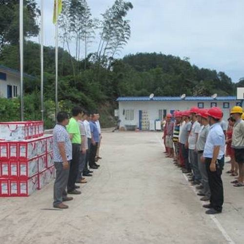 局第一工程處參建職工代表列隊(duì)歡迎, 宋慶伍作了慰問講話。受縣委書記王光柱同志委托,他代表宜賓縣委、縣人民政府向參加蟠龍湖水庫建設(shè)的員工表示誠(chéng)摯的慰問!他說,蟠龍湖水庫作為該縣唯一的一座中型水庫,是宜賓市在建的最大水利工程,更是一項(xiàng)利民工程。工程開工以來,建設(shè)者們克服了交通不便、工程任務(wù)緊等困難,突出工作重點(diǎn),優(yōu)化施工,有力地推進(jìn)了工程建設(shè),再一次展現(xiàn)了“四川水利鐵軍”的風(fēng)采和國(guó)家一級(jí)施工企業(yè)的優(yōu)秀企業(yè)文化。四川省水利電力工程局具有豐富的施工經(jīng)驗(yàn)和管理能力,在宜賓地區(qū)承建了多個(gè)水利水電項(xiàng)目,為開發(fā)宜賓水利水電資源做出了巨大貢獻(xiàn),促進(jìn)了宜賓縣的地方經(jīng)濟(jì)發(fā)展。工程建成后,雙龍鎮(zhèn)不僅有高峽出平湖的壯景麗畫,而且將擴(kuò)灌萬畝良田,惠澤四方百姓。在此,請(qǐng)同志們?cè)谛燎诠ぷ鞯耐瑫r(shí)保重身體,為宜賓農(nóng)田水利建設(shè)再立新功。