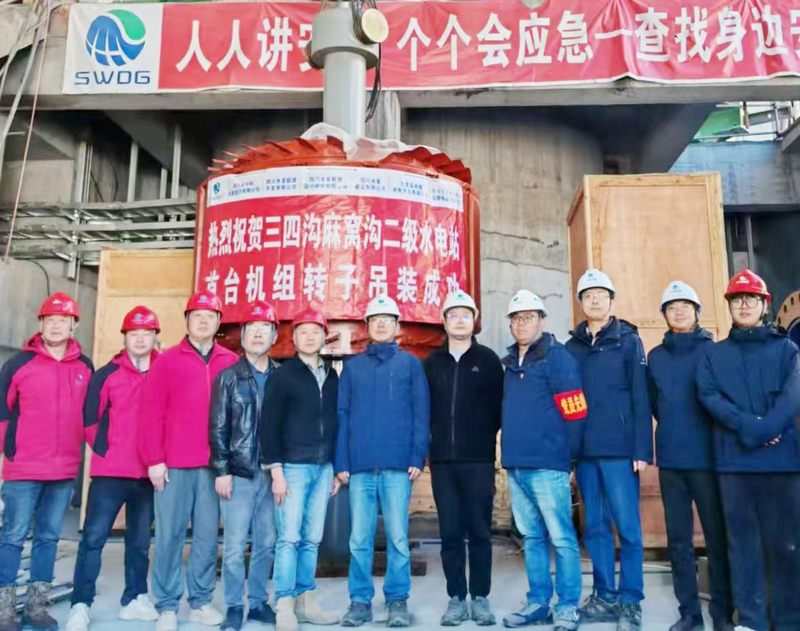 三四溝、麻窩溝二級水電站首臺機組轉子成功吊裝