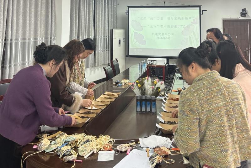 為慶祝第116個“三八”國際婦女節,深入貫徹習近平新時代中國特色社會主義思想和黨的二十屆四中全會精神,豐富女職工精神文化生活,傳遞工會暖心關懷,2026年3月6日,機電安裝分公司工會以“匯聚‘她’力量 譜寫發展新篇章”為主題,開展中藥香囊DIY活動。